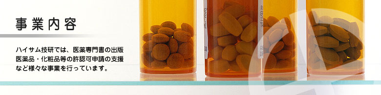 医薬専門書の企画出版、許認可申請等、品質保証のサポート、トータルエンジニアリングはハイサム技研へ。